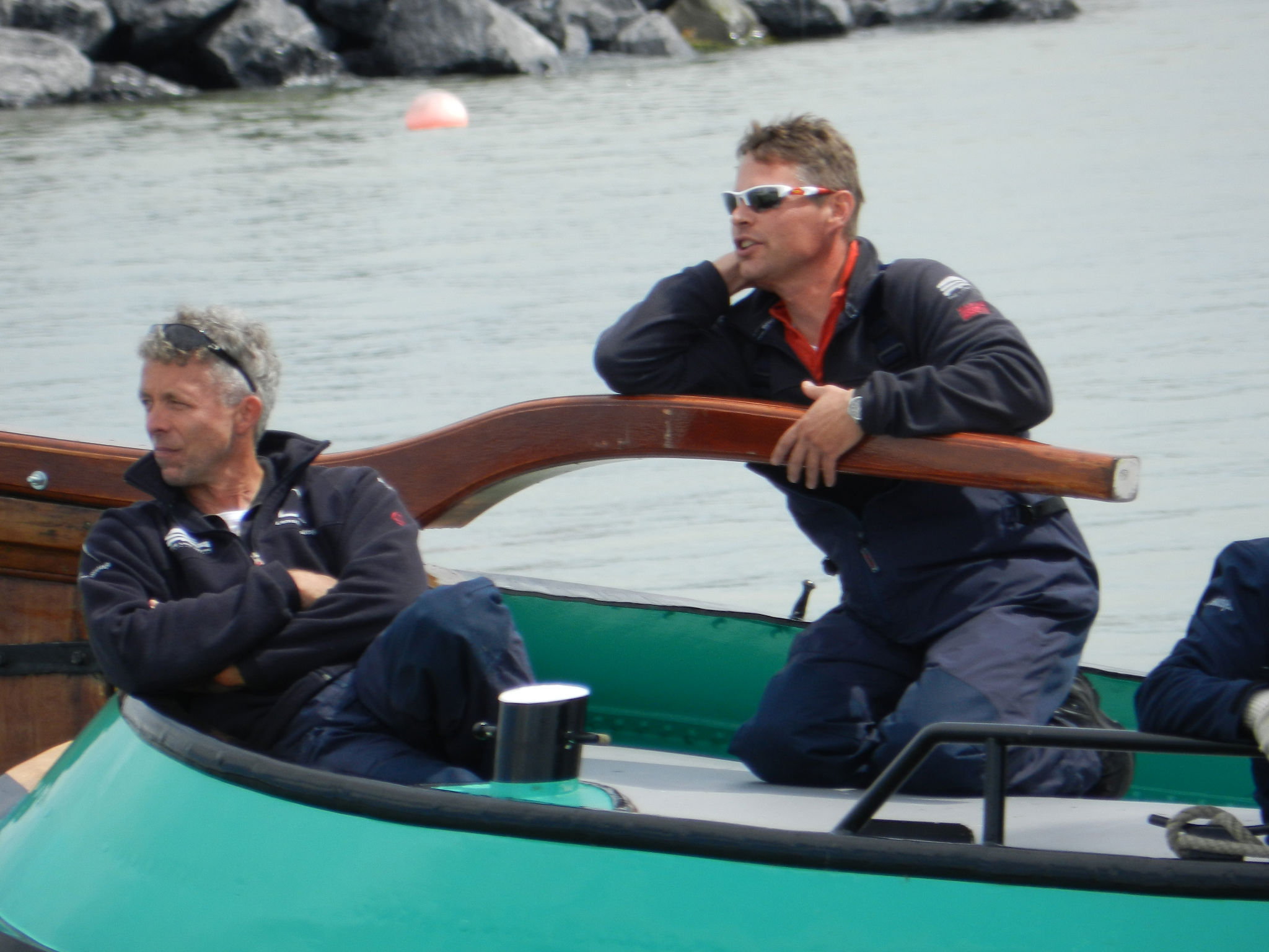 Vanochtend vroeg stond er bijna geen wind. We waren rond 09.00 uur aan boord en hadden gedacht dat we, zoals de berichten waren, veel wind zouden hebben. Maar het was stil. Daarbij behoorlijk wat regen.Maar de wedstrijd kon wel doorgaan, want ook met weinig wind zeilen de skûtsjes. De planning was, overigens in tegenspraak met de officiële berichten, dat we 4 wedstrijden zouden gaan zeilen. In de ochtend 2 en in de middag ook 2 wedstrijden. Maar de ochtend werd al niet gehaald doordat de wind plotseling besloot uit een heel andere hoek te gaan waaien. Dus de organis
