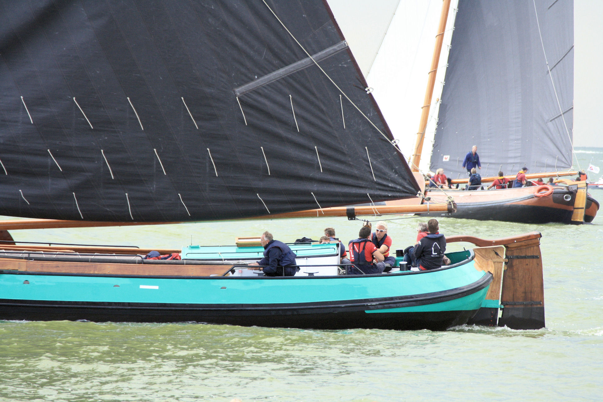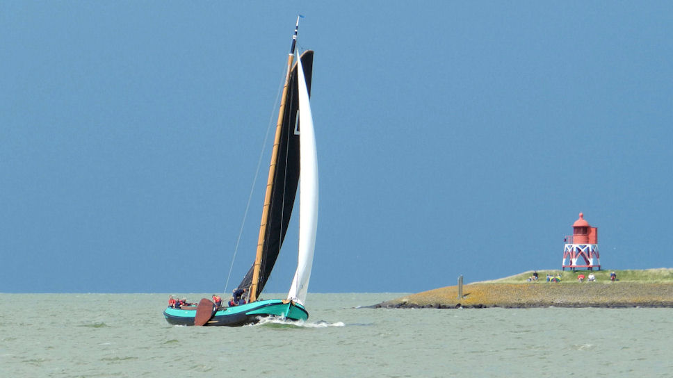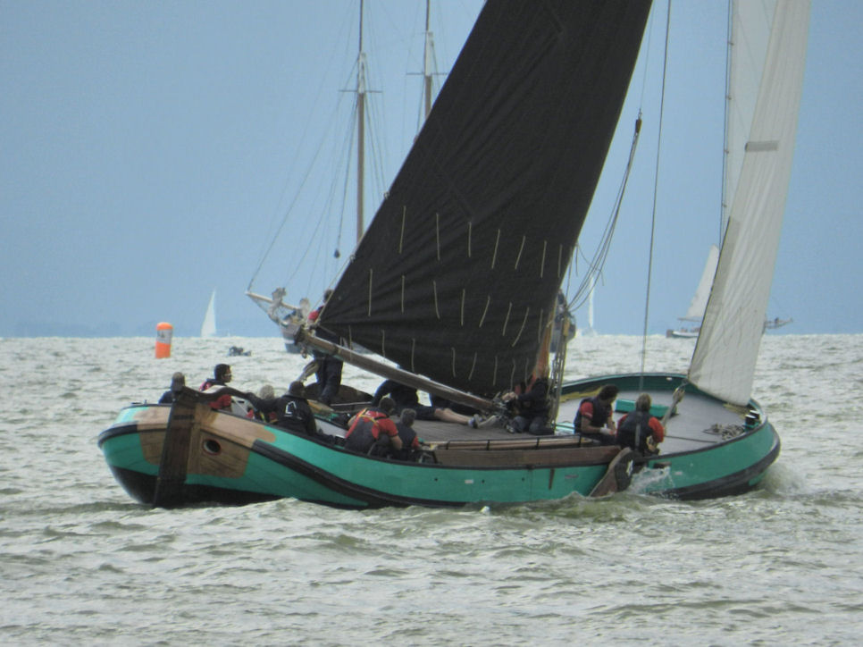 Ook wij gingen naar de ijk, achter Drachten aan en achter ons kwam Grou en de Halve Maen. Toen we bij de dijk aankwamen bleek dat wij het verschrikkelijk slecht hadden getroffen. Enkele skûtsjes, zoals Bolsward en Heerenveen, waren na de laagste ton meteen door de wind gegaan en het IJsselmeer opgezeild. Zij lagen, dat kon ik bij de dijk al zien, al enorm op ons voor. Maar wij hadden ook problemen, evenals Drachten. Wij wilden door de wind, maar hoger dan ons kwamen Grou en de Halve Maen er ook aan. Ik zag dat Drachten door de wind ging en daarna stuurboord Grou naderde. Grou vroeg natuurlijk voorrang vanwege de bakboordspositie, maar het lukte Drachten niet om door de wind te komen. Zij waren net ree gegaan en hadden nog geen snelheid. Grou besloot daarop ook ree te gaan en samen zeilden zij weg het IJsselmeer op. Die coulance kregen wij niet van schipper Berend Mink van de Halve Maen. Ook zij riepen ons aan, en terecht. Johannes had zijn roer er dwars achter om met hen mee te sturen, maar we hadden onvoldoende snelheid. Berend Mink stuurde daarop iets naar onderen zodat wij niet botsten en wij konden doorzeilen. Maar, zo anders dan bij Drachten en Grou, riepen zij tegen ons dat ze tegen ons protesteerden. Formeel gelijk, maar als zij enig gevoel hadden gehad waardoor deze situatie was ontstaan, hadden ze dat nooit moeten doen. Wij hebben wel een route lang nagedacht wat we hier mee moesten. Uiteindelijk hebben we besloten om de groene vlag in het want te hangen, ten teken dat we erkenden dat we fout waren. Als Berend Mink dan de rode vlag zou verwijderen kregen we geen protest, maar wel 3 punten extra in het klassement. Geen makkelijke beslissing, maar toch onontkoombaar.