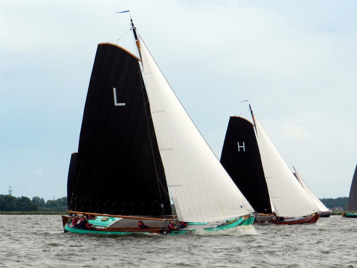 Aan boord werd van alles geprobeerd met de zeiltrim. Zo werd onder andere de broekreef er weer uit gehaald. Het zeil werd losser gevaren en de fok juist wat strakker. Maar het werkte wel. In het 2e kruisrak zagen wij dat wij weer aansluiting kregen met de skûtsjes voor ons en toen wij daarna voor de wind kwamen, konden wij al weer een skûtsje in gaan halen, namelijk dat van Drachten. Het daaropvolgende kruisrak ging ook prima. Toch leek het daar eerst niet op. Wij zeilden iets lager dan Earnewâld en hadden dus last van hun uitgeschoten wind, maar we konden ook niet door de wind, want daar zeilde Drachten zo dicht bij ons dat wij niet door de wind konden. De Drachtsters gingen als eerste door de wind en toen zouden wij dus ook kunnen. Maar kennelijk hadden ze bij ons op het achterdek iets anders gezien, want wij bleven op koers en toen Earnewâld ook door de wind gingen hadden wij weer vrije wind. En toen liep het skûtsje weer prima.