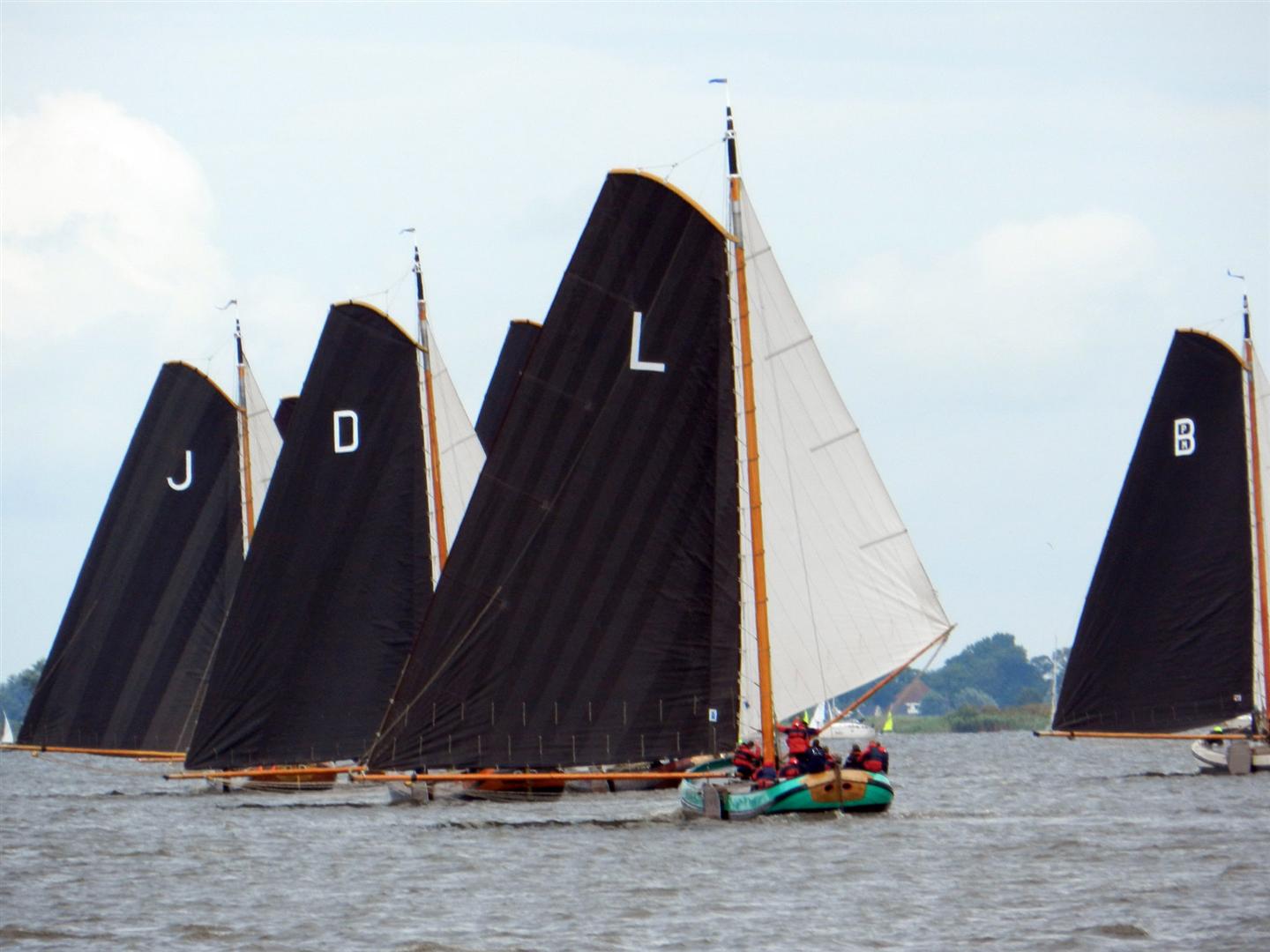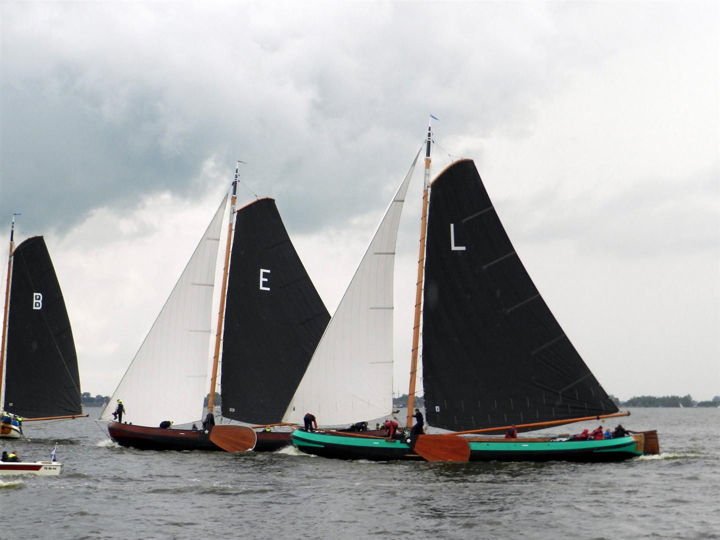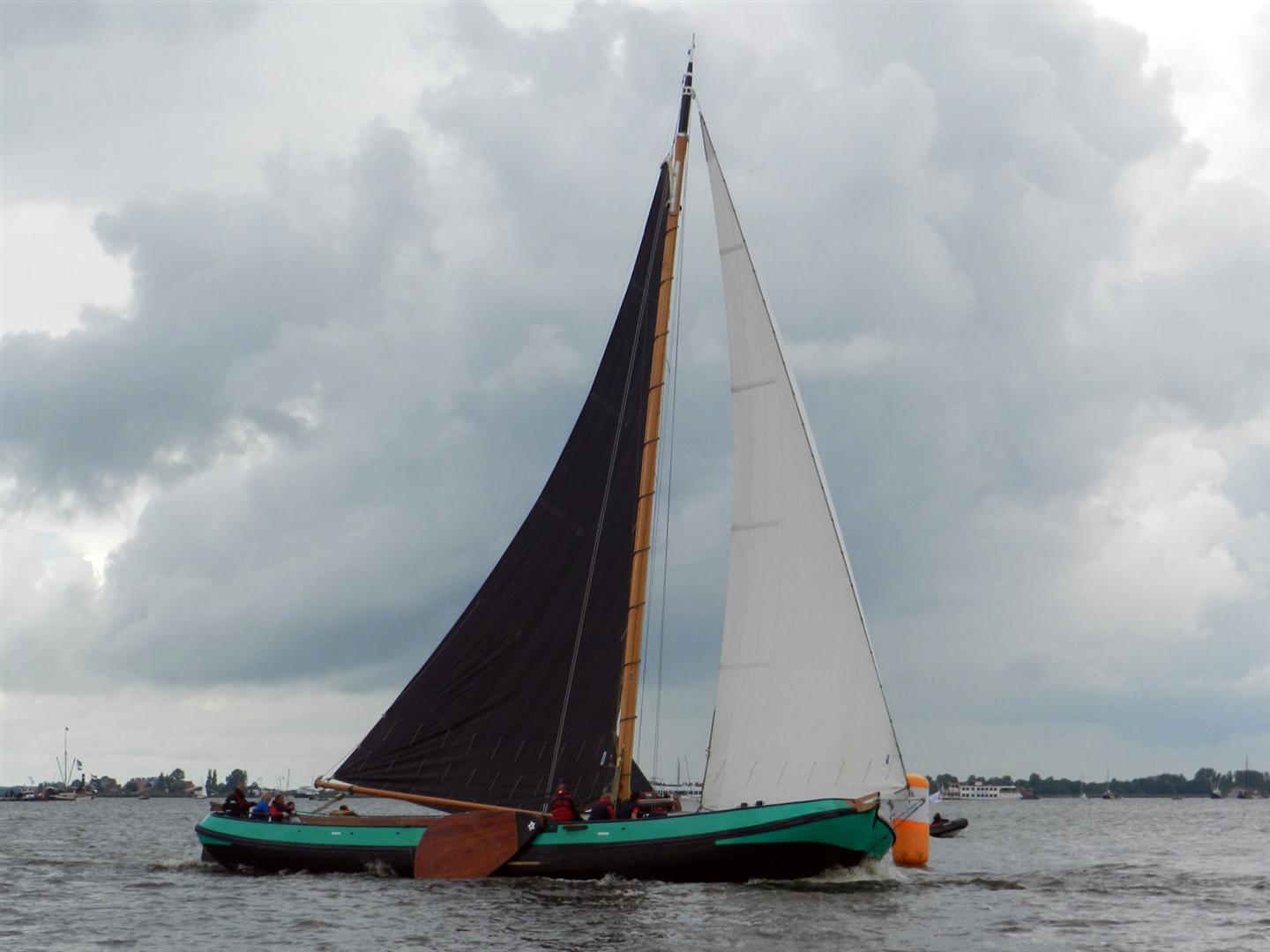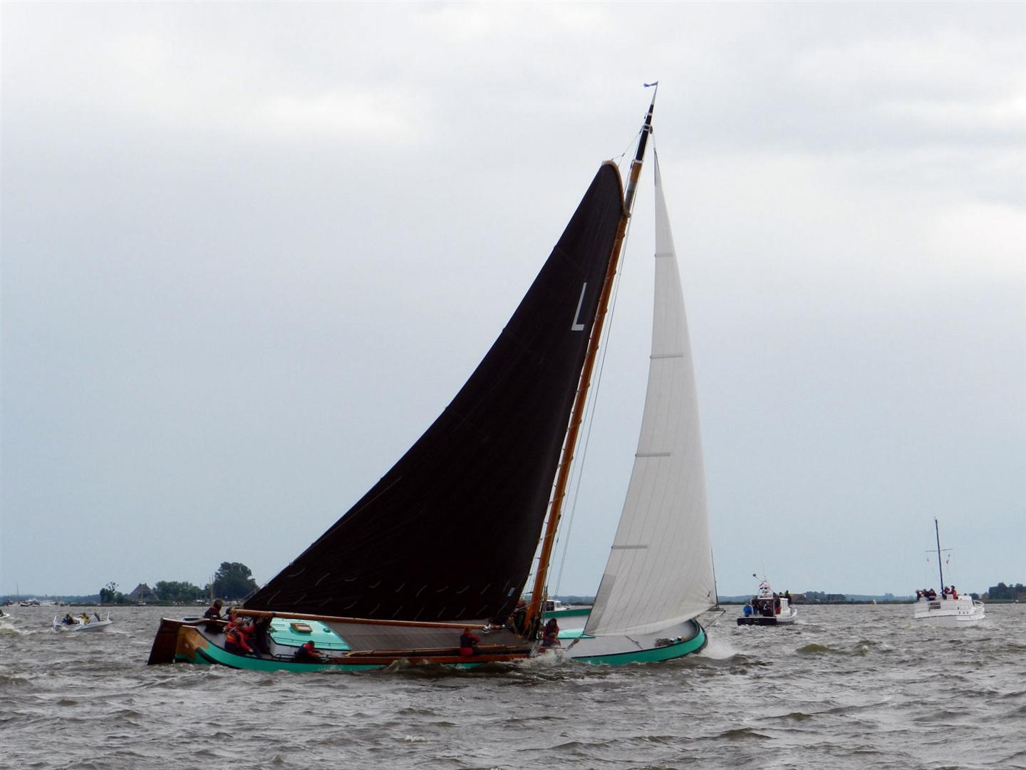 Bij de daarop volgende stuurboordslag kon je al zien dat het achterdek de vlagen prima had gezien en dat we goed hadden gezeild, want we lagen redelijk dicht bij Bolsward, die eerder ver voor ons had gelegen. Maar ook het skûtsje van Joure leek ver weg, terwijl ze voor ons lagen. Bij de hoogste ton kwam dat ook uit, want wij hadden zowel Langweer als Joure ingehaald. Langweer maakte het wel erg spannend, door bij de hoogste ton vlak tussen ons en de ton in te draaien. Maar zij namen te veel risico en raakten de ton. Dat betekende dat zij een rondje moesten draaien en daarmee waren we hen ook definitief kwijt. Wij moesten ons, in het laatste voordewindse rak concentreren op Earnewâld, die vlak voor ons lag. Even leek het er op dat wij hen voorbij konden. Johannes stuurde boven hen, toen zij onder het skûtsje van Bolsward lagen. Hierdoor konden zij niet mee omhoog. Toch bleek dat niet voldoende, want toen zij vrij kwamen van Bolsward konden zij voldoende hoog sturen om voor ons te blijven. Bij de laagste ton bleek dat wij net niet boord aan boord lagen en dus moesten wij hen bij de ton voor laten gaan. Dat zijn nu eenmaal de regels. Toen was het naar de finish alleen maar achter elkaar aan zeilen en daar eindigden wij als 7e.