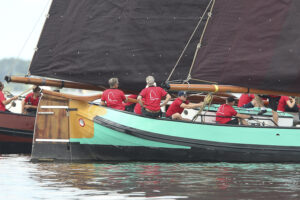 Het zinde schipper en bemanning niet. Gedurende de korte pauze tot aan de tweede wedstrijd werd door schipper en enkele bemanningsleden nog driftig geschrobd aan de zij- en onderkant van het skûtsje. Het leek erop alsof er nog zaken aan het schip kleefden die verwijderd moesten worden. Alles voor de snelheid. De tweede race startte Albert met zijn team messcherp als bovenste schip op de startlijn. Toch speelde ook deze wedstrijd de wispelturige wind de schippers parten waardoor vooraf uitgekozen slagen niet het bereikte resultaat kregen. Het Lemster Skutsje rondde als negende de eerste bovenboei. Sytze Brouwer (Heerenveen) deed dit als eerste gevolgd door Jeroen Pietersma (Drachten) en Klaas Westerdijk (Halve Maen). In het daaropvolgende korte kruisrak sloeg Albert Visser zijn slag. Door niet braaf achter de meute aan te zeilen maar een eigen koers ” de mar yn” , te kiezen. Het resulteerde in een vierde stek achter Heerenveen, Drachten en Johannes Meeter (Huizum). Laatstgenoemde rukte op vanaf een achtste notering.