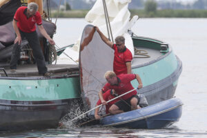 Afgelopen zaterdag zeilden de veertien skutsjes van de SKS hun laatste wedstrijd voorafgaand aan het kampioenschap 2018. Plaats van handeling het Heegermeer bij Woudsend. Ons team op het Lemster Skutsje onder leiding van kapitein Albert Visser is er na vele trainingen gedurende de afgelopen maanden helemaal klaar voor. Nog eenmaal de strijd aangaan met de concurrentie en de puntjes op de i zetten is het devies. Al werkte de wind zaterdag niet mee. De eerste wedstrijd in de ochtend kenmerkte zich door het soms geheel wegvallen van de wind. Albert Visser en Sytze Brouwer (Heerenveen) leken hiervan het grootste slachtoffer te worden. Na de start kozen deze beide schippers voor een lange bakboordslag om vervolgens over stuurboord het eerste merkteken aan te kunnen zeilen. Dat was het plan. Beide schepen kwamen in een windstilte te liggen. Weg mooie klassering. Als dertiende en veertiende rondden zij het eerste merkteken. De Halve Maen en Woudsend lagen op dat moment al ver vooraan en werden respectievelijk eerste en tweede. Albert Visser probeerde nog wel vanuit een geslagen positie naar voren te “drijven” maar tevergeefs. Een laatste plaats tijdens de eerste wedstrijd dat kon en moest beter.