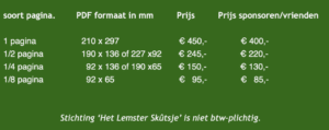Met de opbrengsten van de advertenties bekostigen wij het magazine dus uw donateurs- , vrienden- sponsorbijdrage worden puur gebruikt voor het Skutsje.
