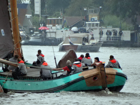 Wat duidelijk is is dat de wind haaks op het water staat. Dit houdt in dat we richting Stobbehoek zeilen en zo weer richting Iezicht kunnen gaan zeilen. Heen en weer zeilen. Achter elkaar aan. Het heeft wat van drs P. Dit houdt in dat we achterin zeilen en proberen moeten naar voren te komen. En dat is verhipt moeilijk met deze weersomstandigheden en deze wind. Lemmer bleef strijden.
