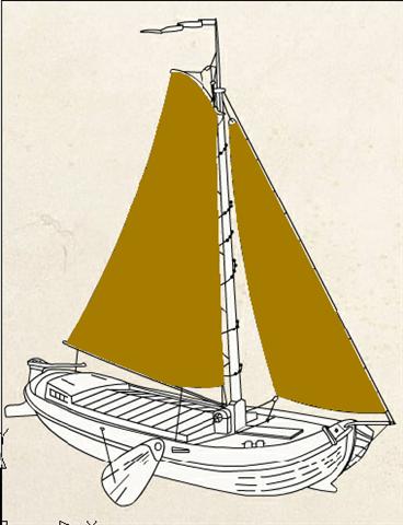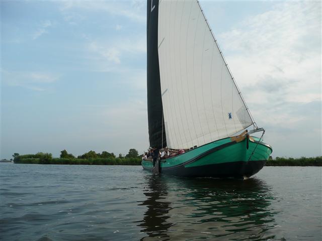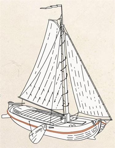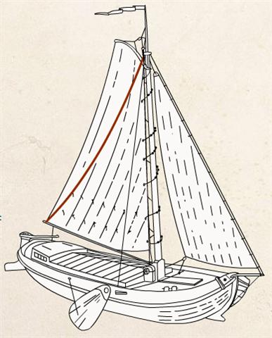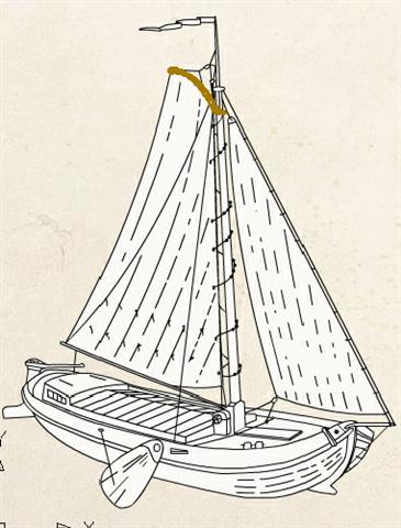 Op een skûtsje kun je met het katteval de voorste hoek van het grootzeil, de broek, omhoog trekken. Daarmee kan de schipper even onder het zeil |
