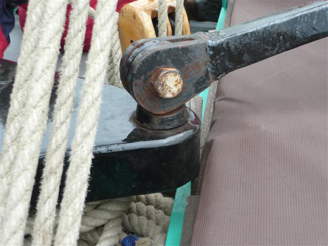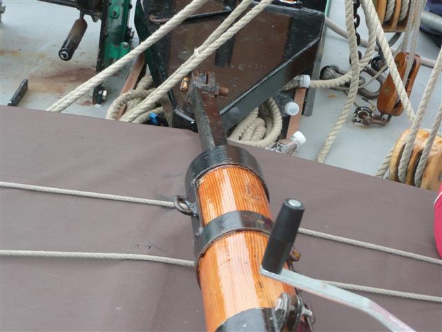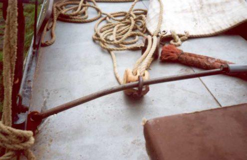 waarom is die auto niet sneller? Oplossing: Luiwagen. De luiwagen is een ijzeren stang op het voordek van het skûtsje. Het fokkeschootblok glijdt over deze stang heen en weer tijdens de overstag manoeuvre.