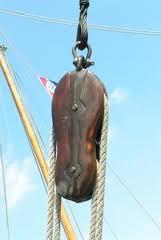 touw om mee te hijsen? Oplossing: kraanlijn. De uitleg spreekt voor zich dacht ik zelf. De kraanlijn is het touw/staaldraad dat aan het einde van de giek vastzit. Vandaar gaat het naar de top van de mast en dan recht bij de mast naar beneden. Bij de mast kun je dus, door aan de kraanlijn te trekken, de giek omhoog tillen. Als het zeil gehesen wordt, wordt altijd de kraanlijn eerst omhoog gehesen. Anders zou je, samen met zeil dat al erg zwaar is, ook nog eens de giek omhoog moeten hijsen.